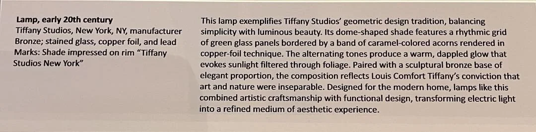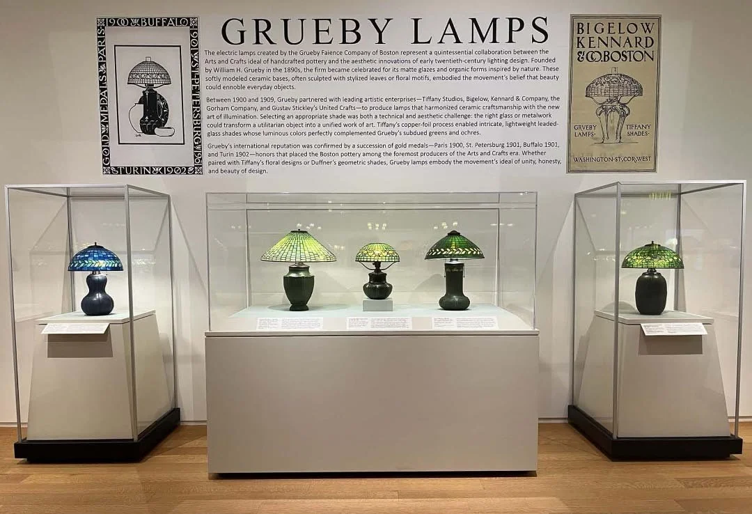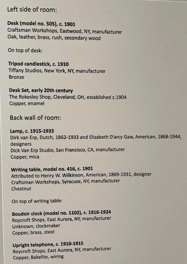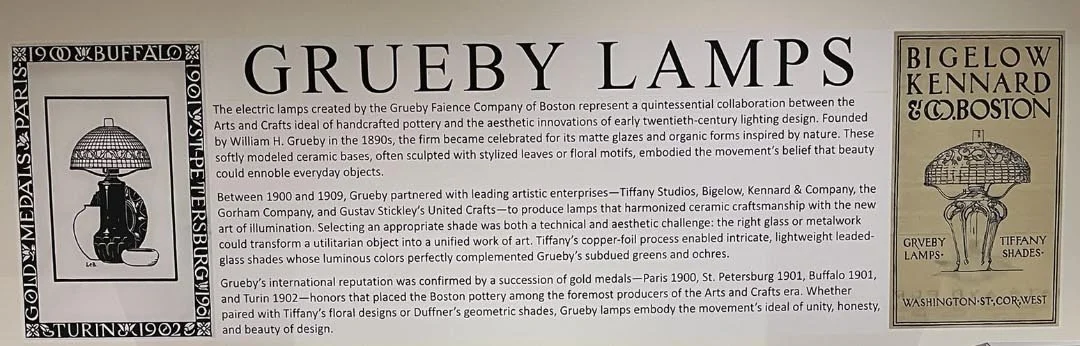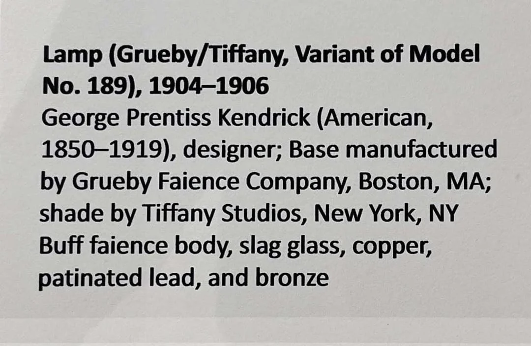 I thought the Medusa lamp designed by Elizabeth Eaton Burton (1869-1937) was pretty spectacular—and it was nice to get the inside view. The Grueby Faience Company, in Massachusetts, also made beautiful works. But I’ve kept those to a minimum, because some of you are probably thinking, Enough with the lamps already. Still, I would have taken more photos, but there was so much museum to see, and not enough time to see it all.
