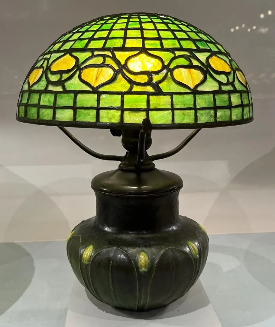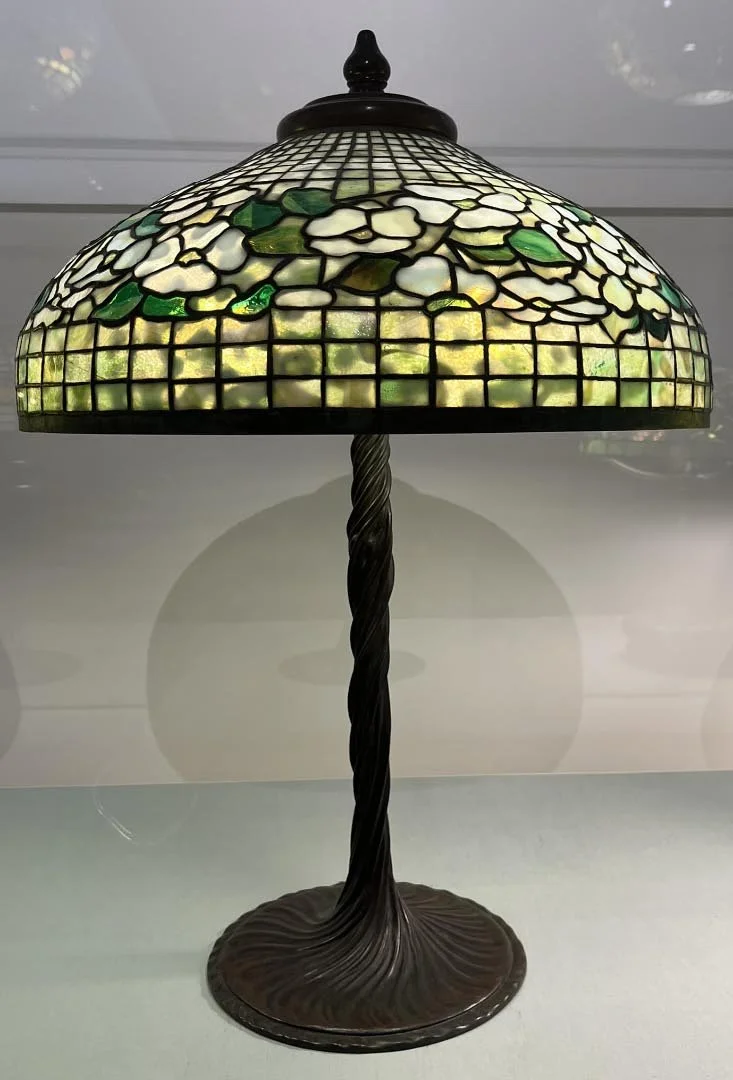 This being Women’s History month, the majority of images I’m including are works by women. I’ll start with the Tiffany lamps. Not until the early part of the current century were we made aware of how much of this work was done by women, namely, Clara Driscoll and the Tiffany Girls.
