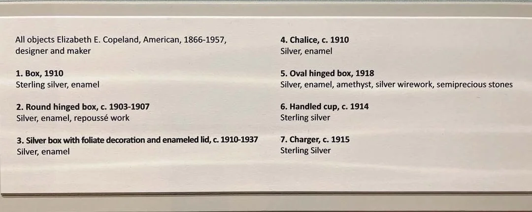 Elizabeth Ethel Copeland, who also worked in the Boston area, created more of a medieval look with her enamel and metalwork.