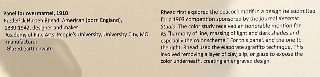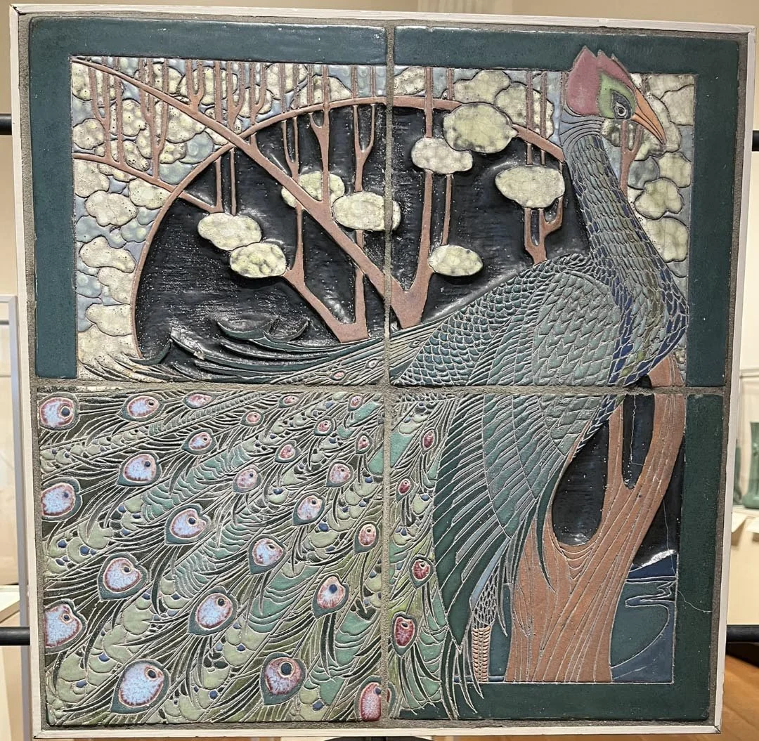 More tile work: Frederick Hurten Rhead’s peacock panels. Until I looked him up, after seeing these works, I didn’t know that he was the one who designed Fiesta ware. I began collecting in the 1970s, so ended up with some of the early stuff, but I didn’t collect to collect; I used it, and loved it. When the new ceramics came out in the 1980s, I bought those, too. Most of my collection is now in other households, but I retain a few of my favorite pieces.